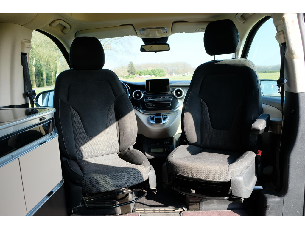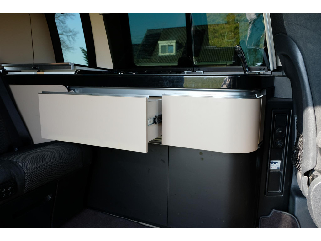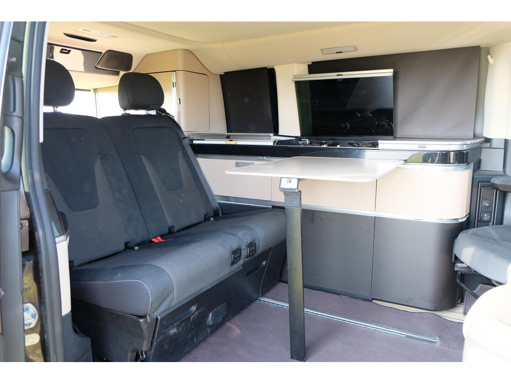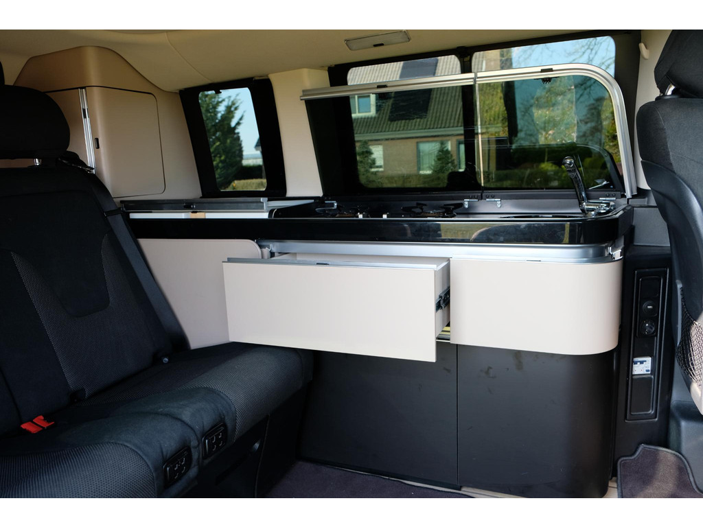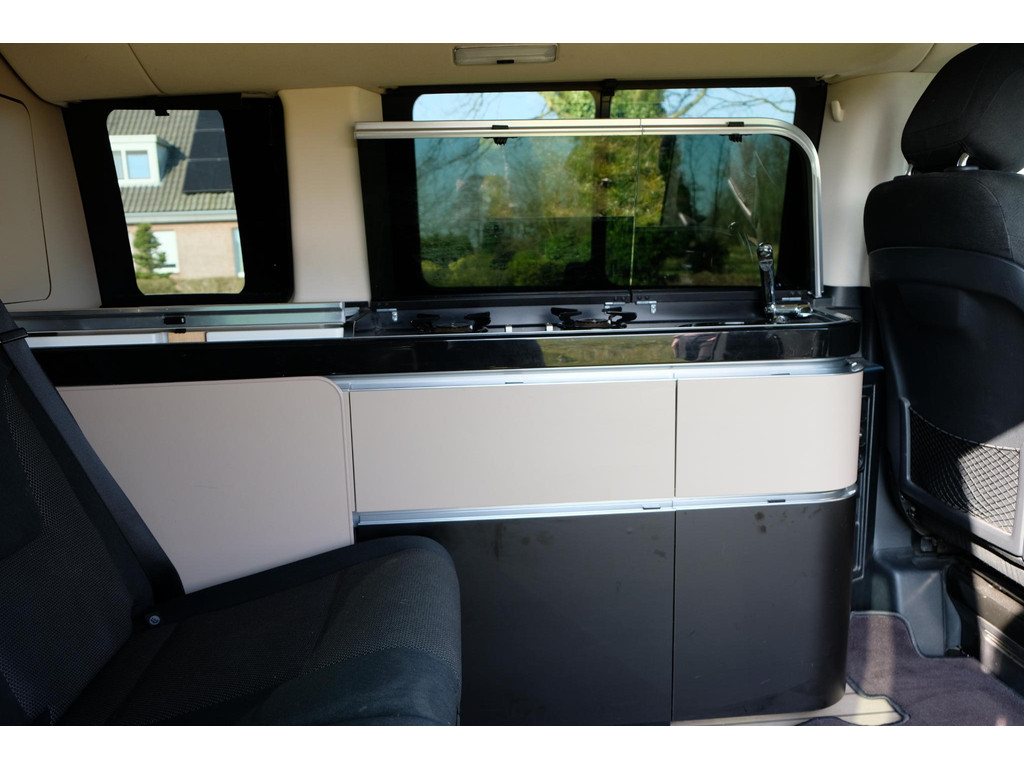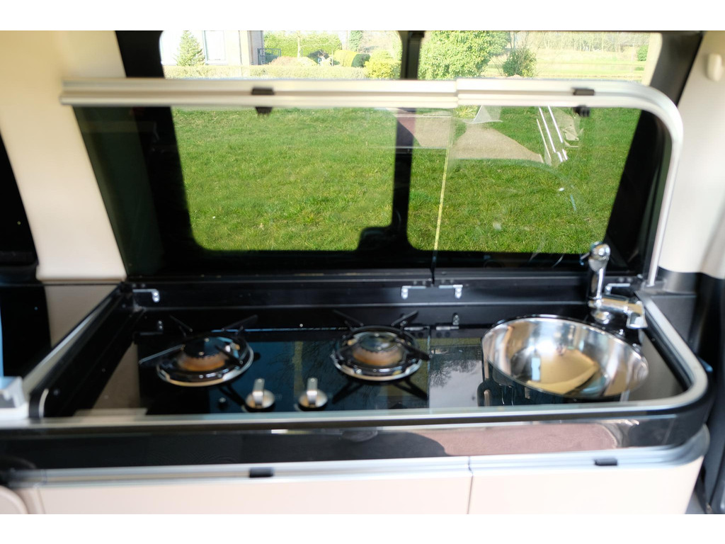 Het interieur van de camper ziet er nog heel goed uit. Het hefdak, dat handmatig te openen is, biedt een ruime slaapplek voor twee, terwijl de achterbank elektrisch om te bouwen is tot een tweede tweepersoonsbed. Hierdoor is het mogelijk om met 4 personen op pad te gaan met deze camper. Het keukenblok beschikt over een koelkast, 2 kookpitten (gas), een wasbak en opbergruimte voor al je keukenspullen. Door de trekhaak is het mogelijk om extra bagage of fietsen mee te nemen. Daarnaast beschik de Marco Polo over airco, navigatie en een achteruitrijcamera zodat je kunt genieten van maximaal rijcomfort.