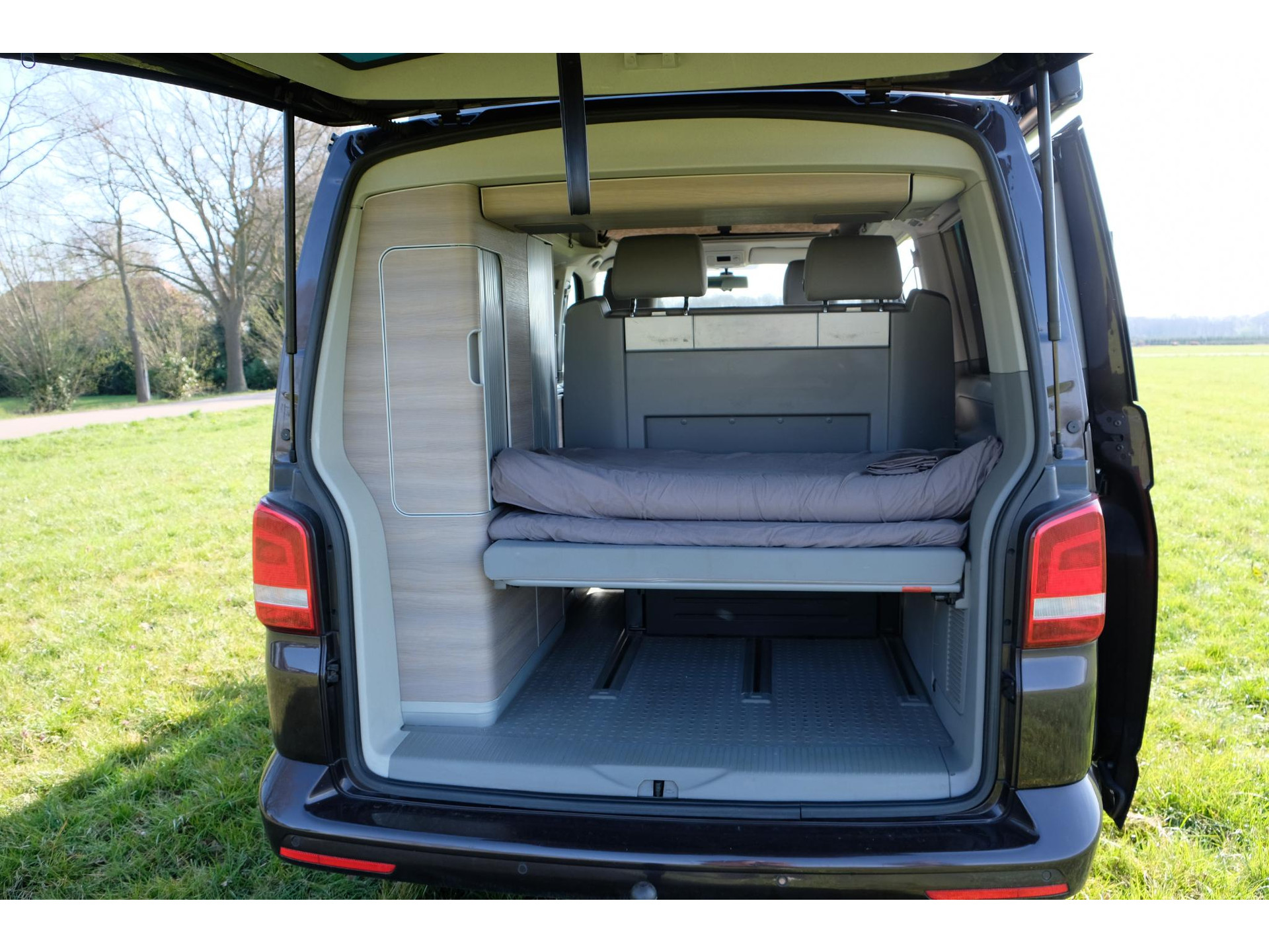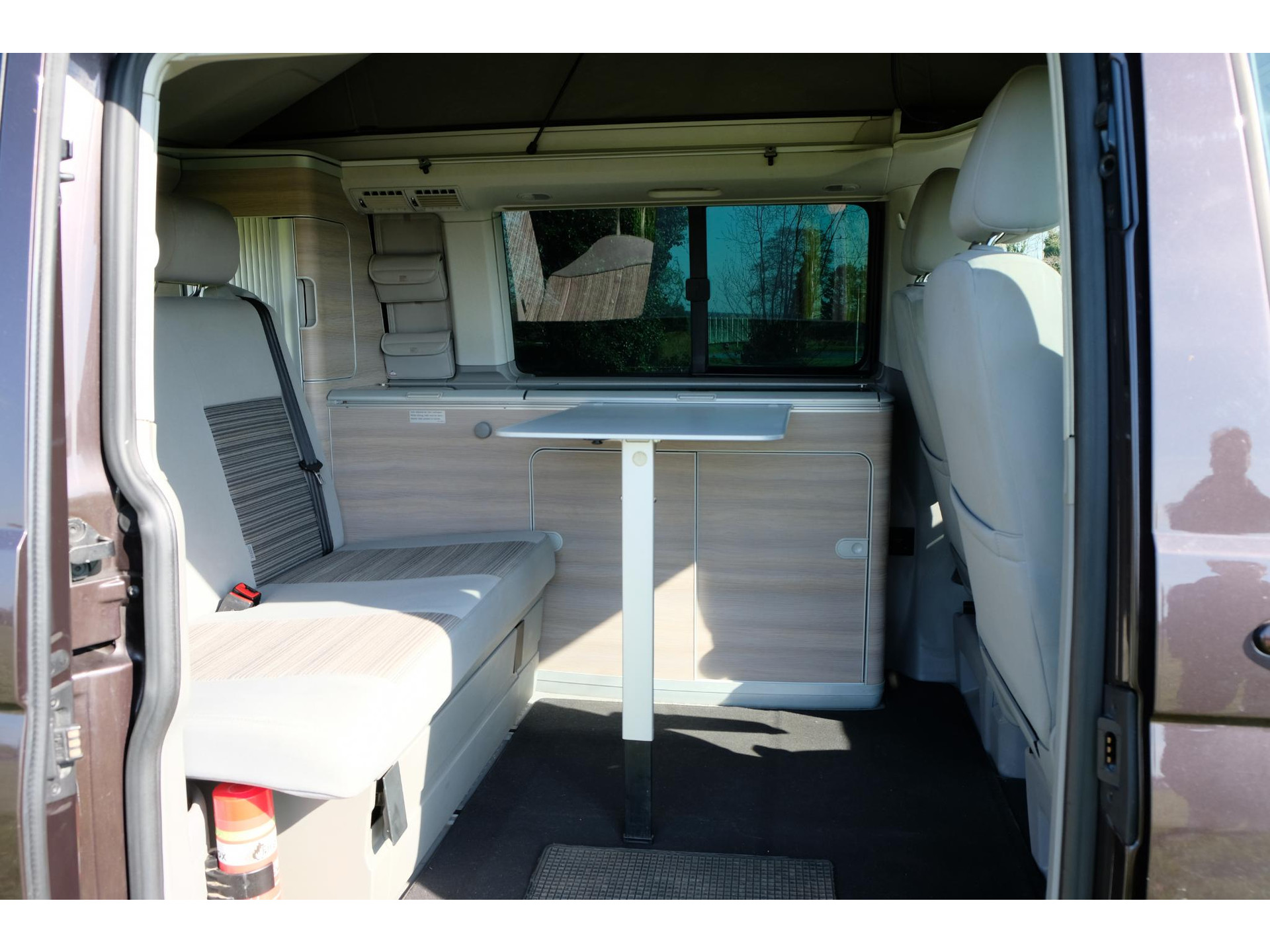 Deze California heeft een unieke kleur die officieel als paars te boek staat, maar in werkelijkheid een warme bruinachtige tint heeft. Een stoere look die perfect past bij avontuurlijke roadtrips! Deze California biedt plek aan vier personen om te slapen en beschikt over vier stoelen met gordels, ideaal voor het hele gezin of een vriendengroep.