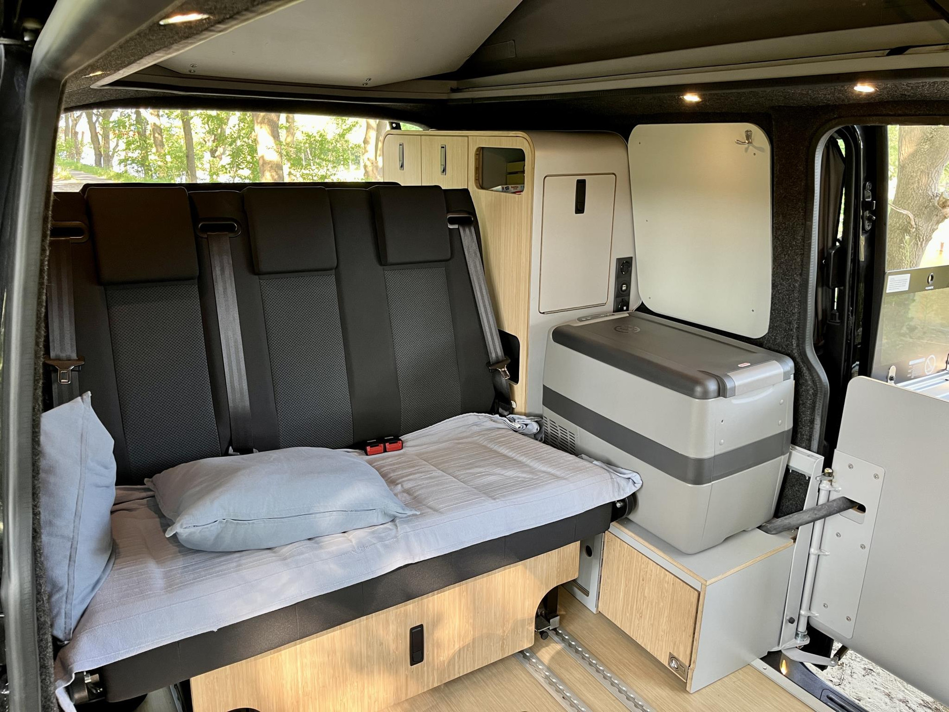 Naast het stukje leven, is er natuurlijk ook het stukje slapen. Deze Tonke VAN XL biedt 4 slaapplaatsen, waarvan 2 bovenin het hefdak met een extra lang bed en 2 beneden op de bank (125x195). Het voertuig zelf biedt 5 zitplaatsen, dankzij de 3-zitsachterbank. Maar deze Tonke VAN XL is gekeurd voor 7 personen. Door het railsysteem zijn de optioneel extra stoelen makkelijk te plaatsen of te verwijderen en maakt u van een standaard 5 persoons auto het in een handomdraai een 7 persoons camper.