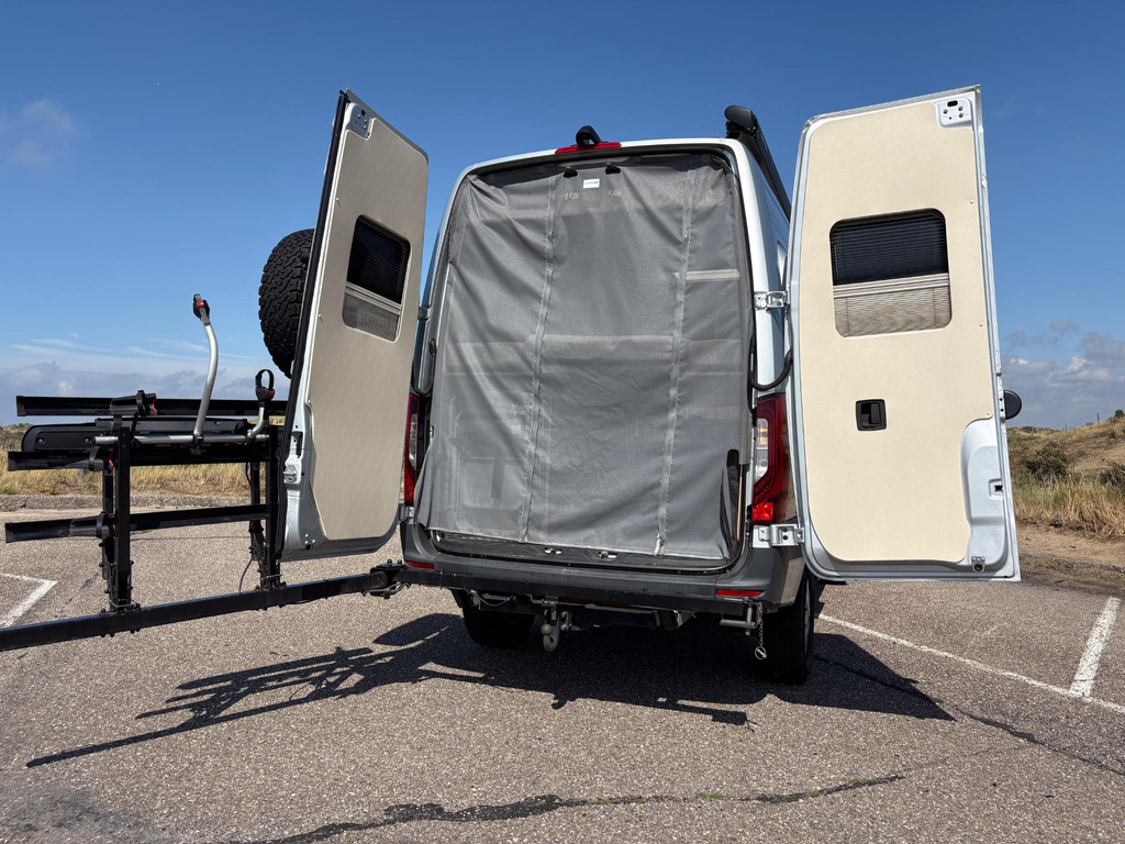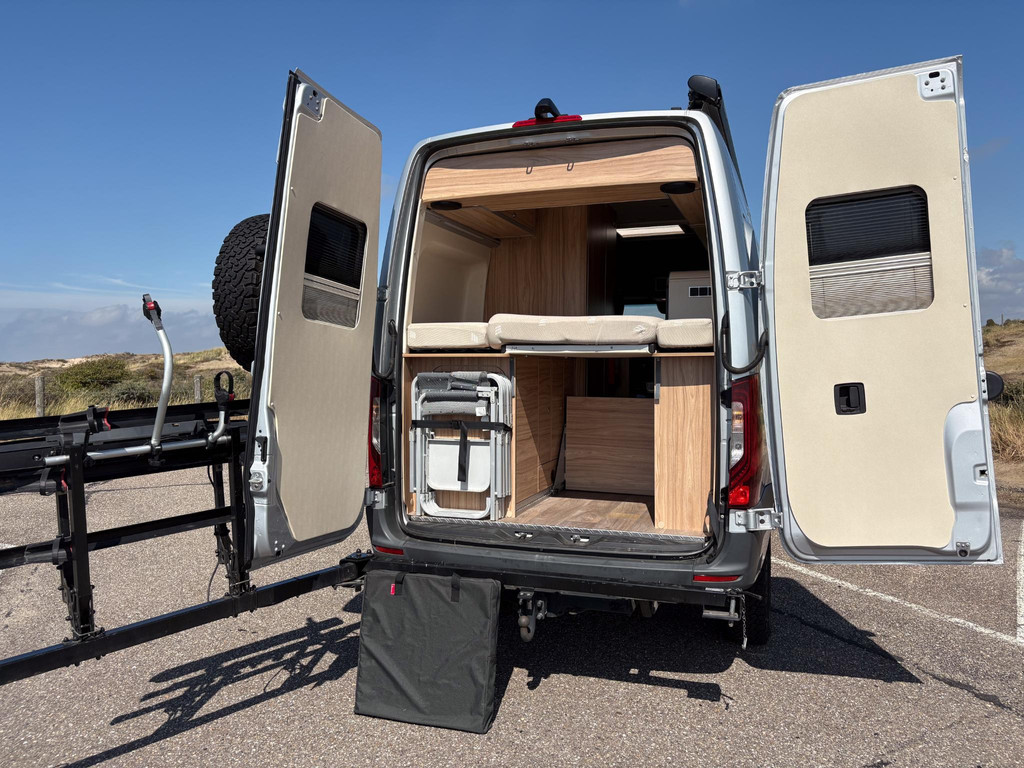 De uitrusting is zeer compleet. Denk aan twee reservewielen (één onder de auto en één op een speciaal achterrek), een luxe zwenkbaar fietsenrek waarmee de fietsen kunnen blijven staan bij het openen van de achterdeuren, zwartlederen bekleding, een zonnepaneel, een elektrische luifel, een krachtige dakventilator, muggenhorren en nog veel meer.