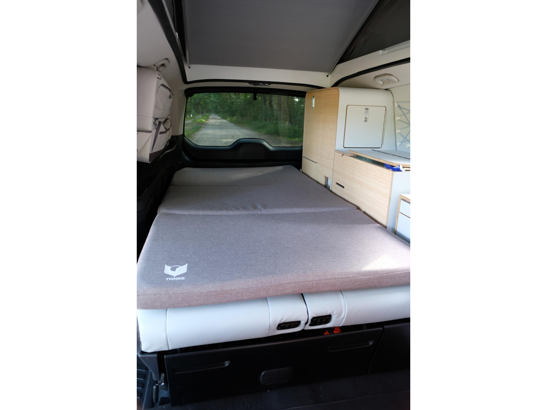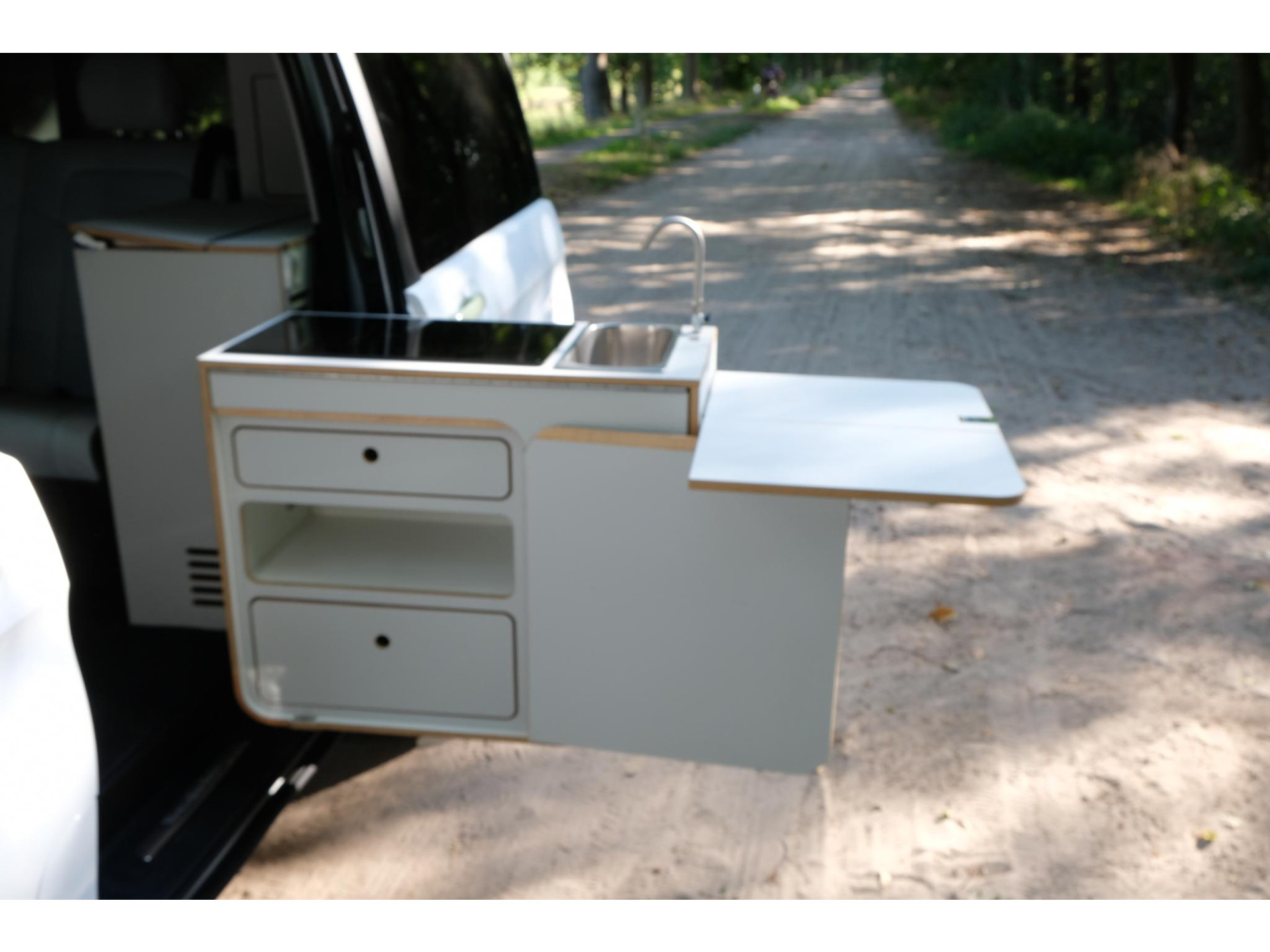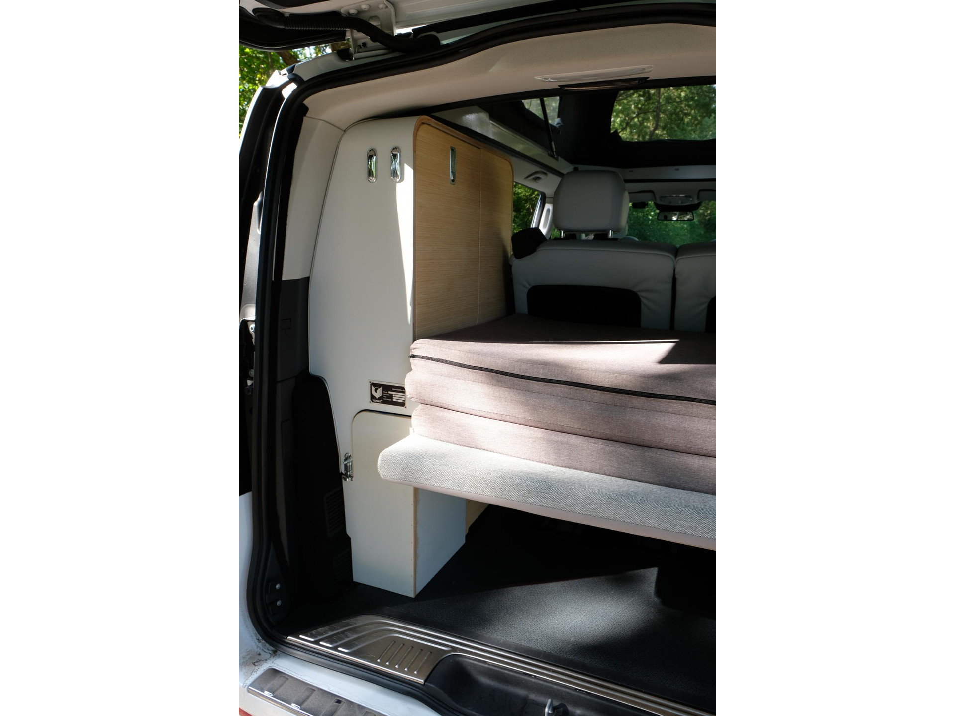 In het campergedeelte vind je een naar buiten draaiende keuken met inductiekookplaat en koelkast. Dankzij het hefdak ontstaat er bovendien een ruime slaapplaats. Zo combineert dit model dagelijkse bruikbaarheid met de vrijheid van een compacte camper.