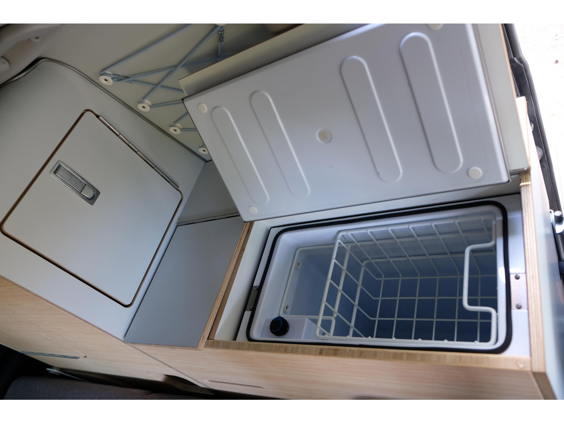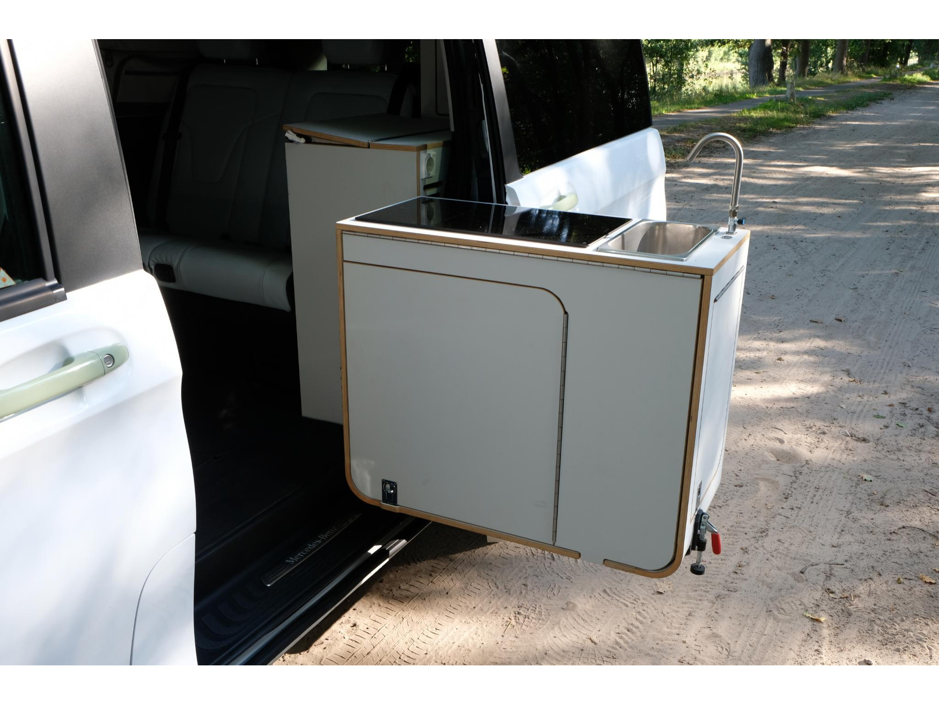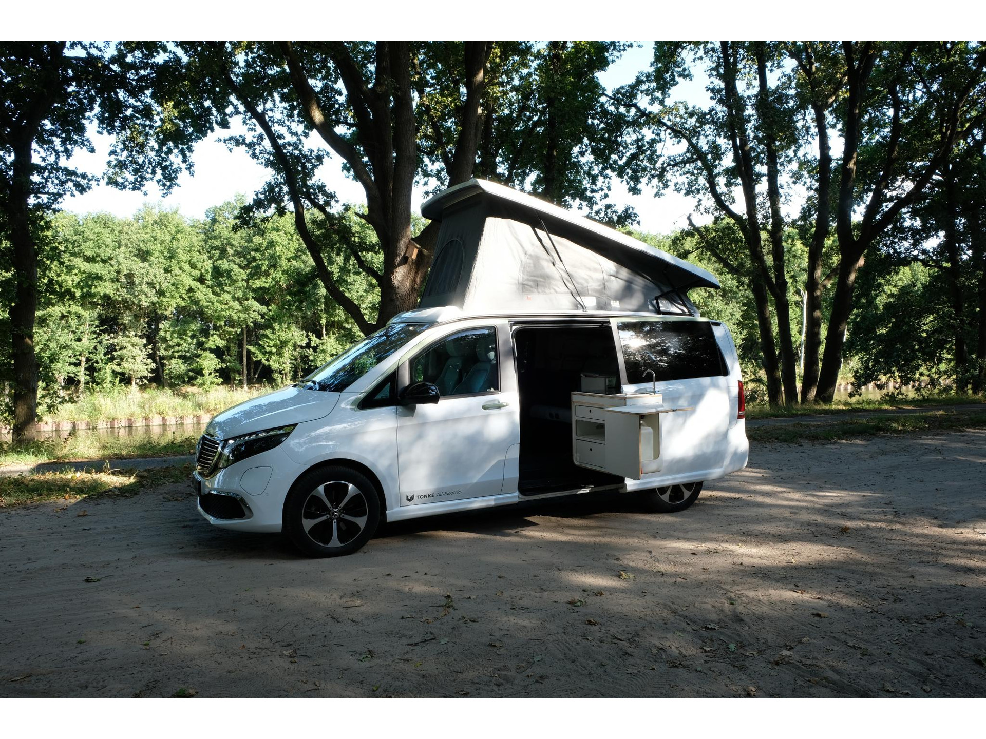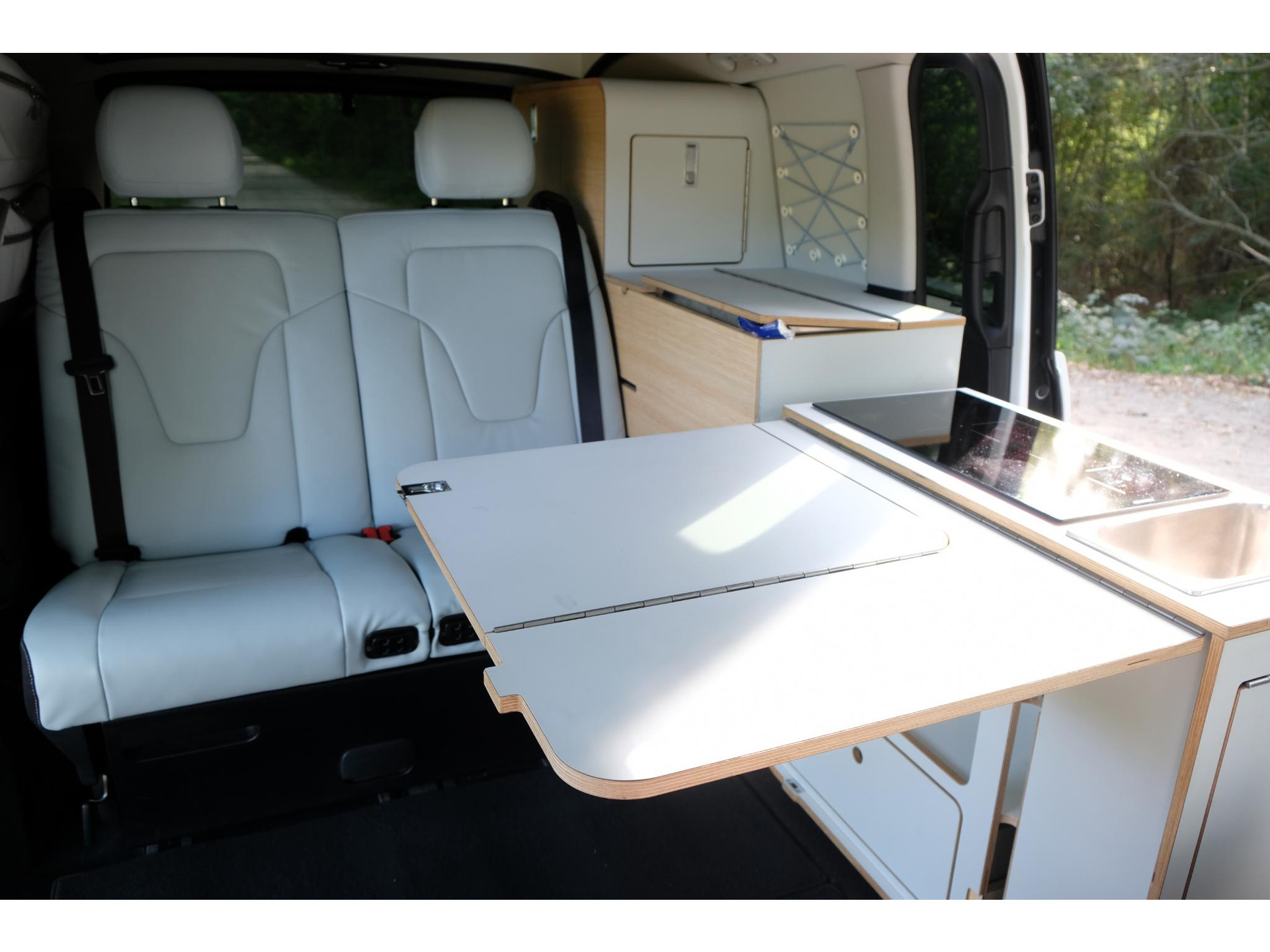 In het campergedeelte vind je een naar buiten draaiende keuken met inductiekookplaat en koelkast. Dankzij het hefdak ontstaat er bovendien een ruime slaapplaats. Zo combineert dit model dagelijkse bruikbaarheid met de vrijheid van een compacte camper.