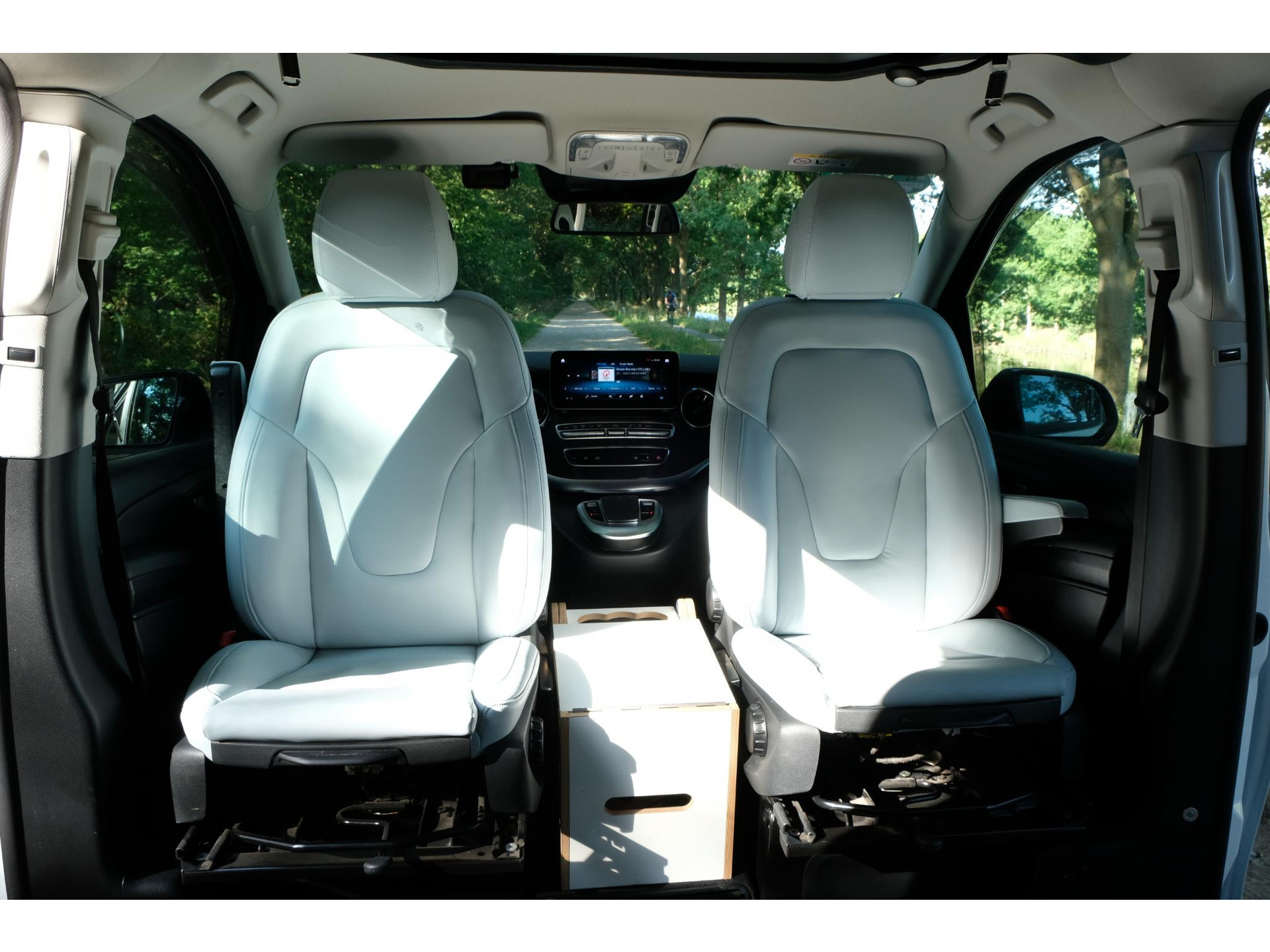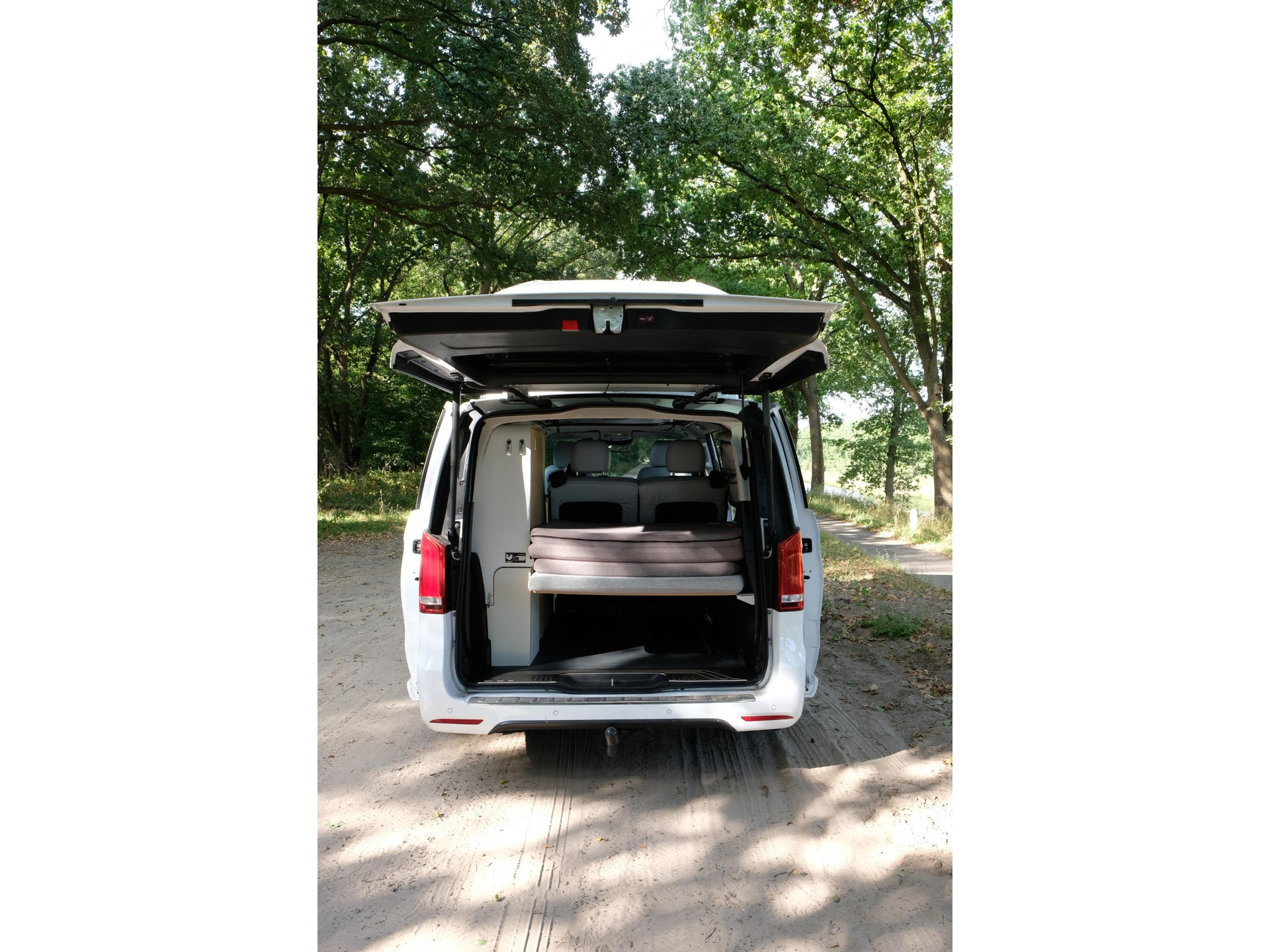 De bus heeft 66.000 km gereden en is uitgerust met alle gemakken die je verwacht van een moderne Mercedes: comfortabele stoelen en bank in vegan leather met armsteunen, verwarmbare voorstoelen, cruise control, airco, navigatie, Apple CarPlay, een elektrische schuifdeur en achterklep, plus dashcams voor en achter. De Camper is voorzien van een klasse 3 alarmsysteem met certificaat dat nog geldig is tot 8 mei 2026