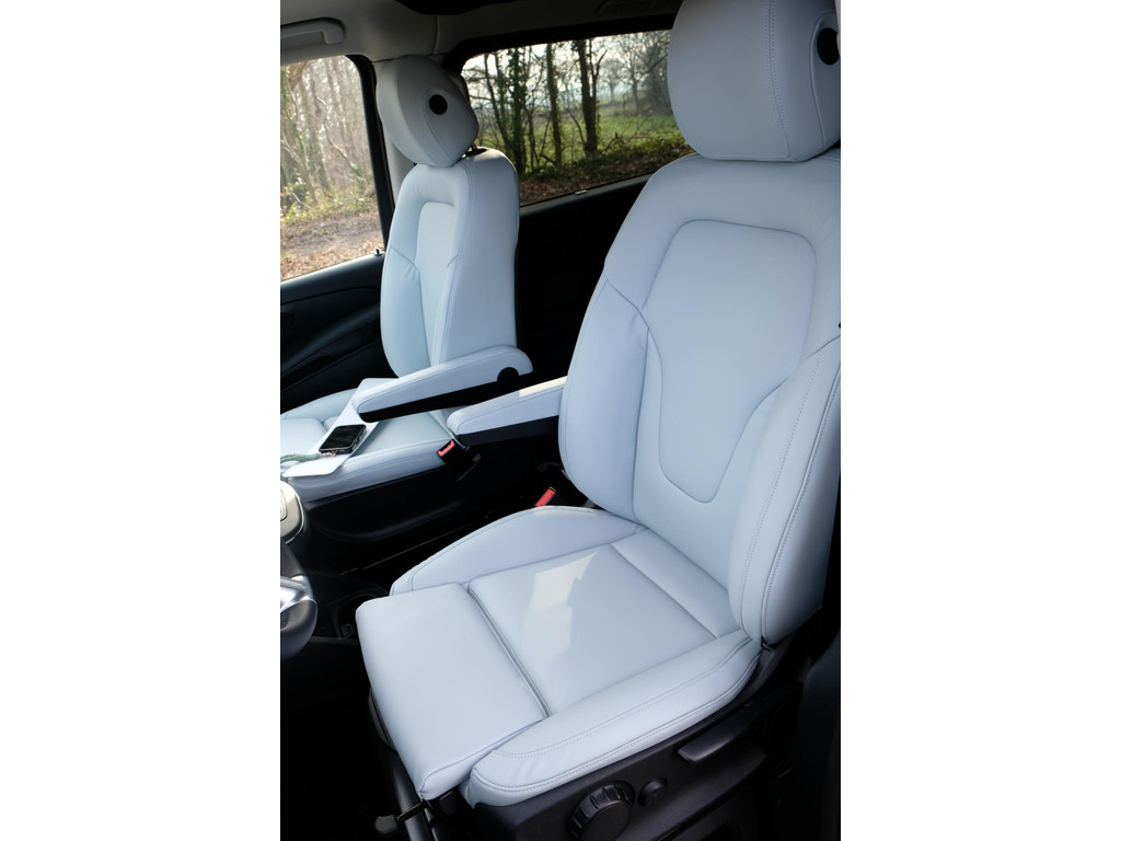 Tijdens het rijden biedt de EQV het stille, soepele karakter van elektrisch vervoer, gecombineerd met hedendaagse assistentiesystemen zoals adaptive cruise control, lane assist en een 360‑gradencamera die manoeuvreren bijzonder eenvoudig maakt. Airco, navigatie en Apple CarPlay maken elke rit ontspannen en overzichtelijk.