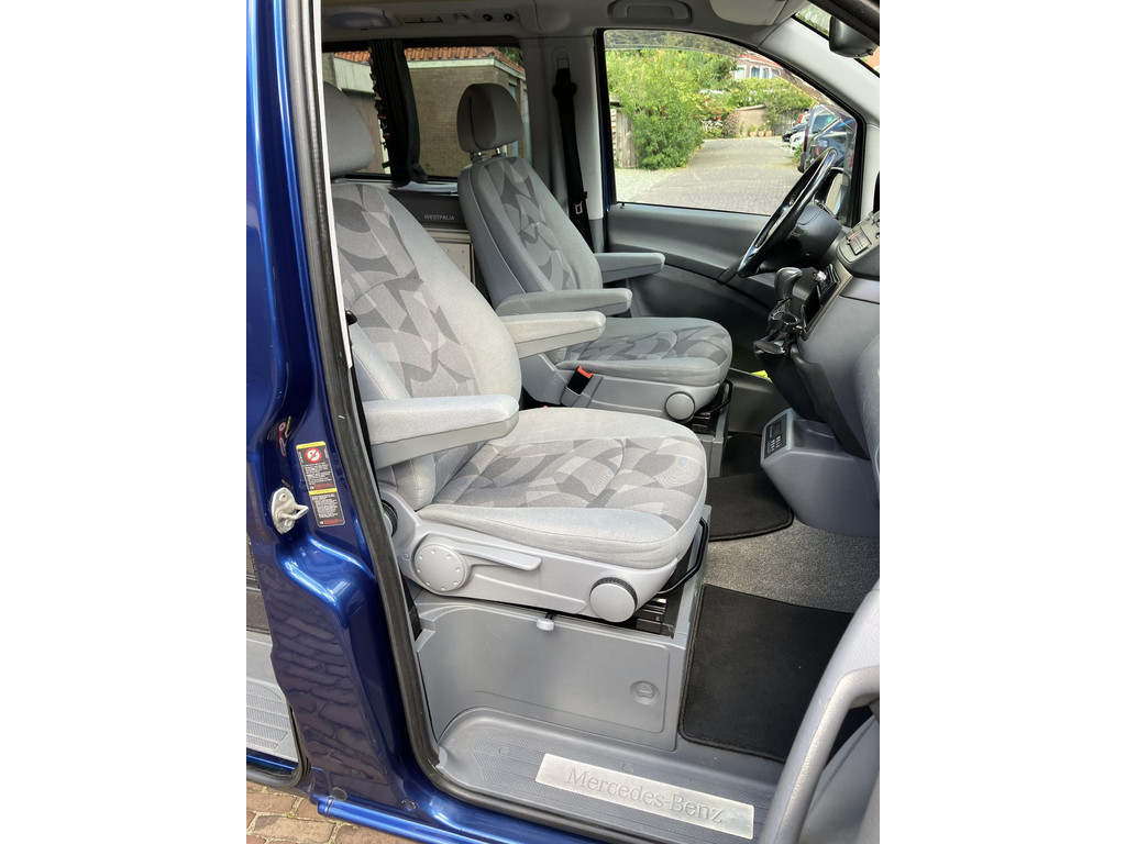 Deze Viano Marco Polo is volledig uitgerust voor zorgeloos onderweg zijn, met een praktische en slimme Westfalia indeling. Dankzij het hefdak geniet je van een ruime slaapplaats, terwijl de draaibare stoelen en slimme bankindeling zorgen voor een gezellige zithoek.