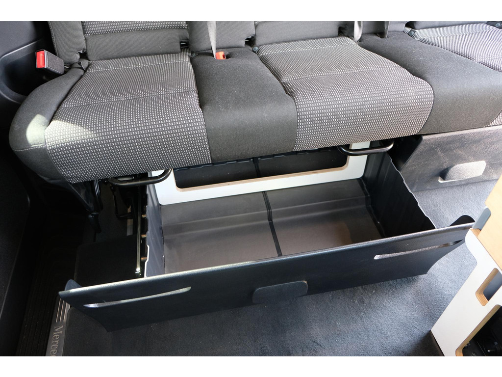 De Nomad is ontworpen voor maximale vrijheid onderweg. Het interieur biedt de mogelijkheid om twee ruime bedden te creëren, ideaal voor comfortabele nachten op elke plek. Achterin bevindt zich een praktische storage lade bij de achterklep, perfect voor bagage of outdoor gear die je snel bij de hand wilt hebben.