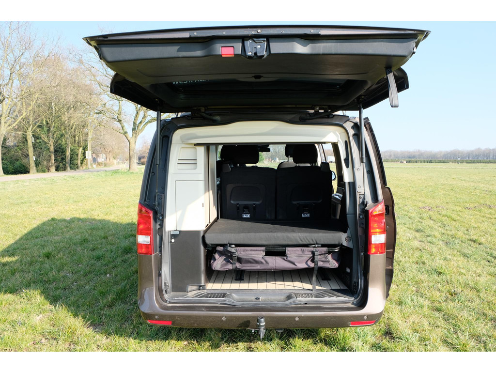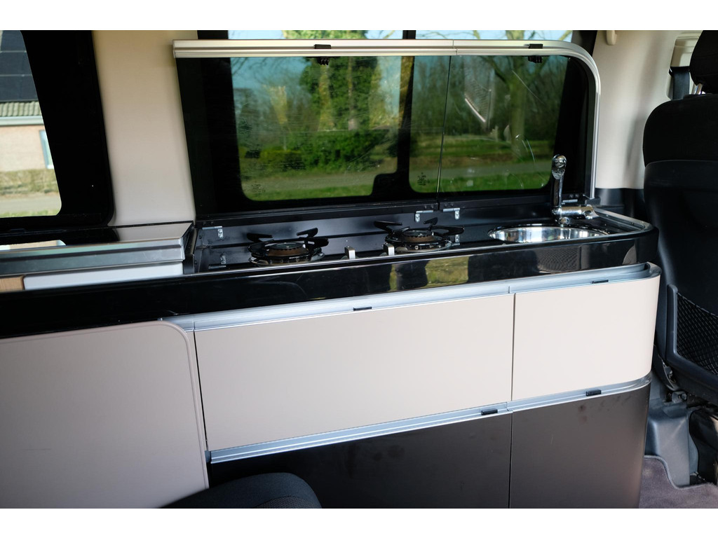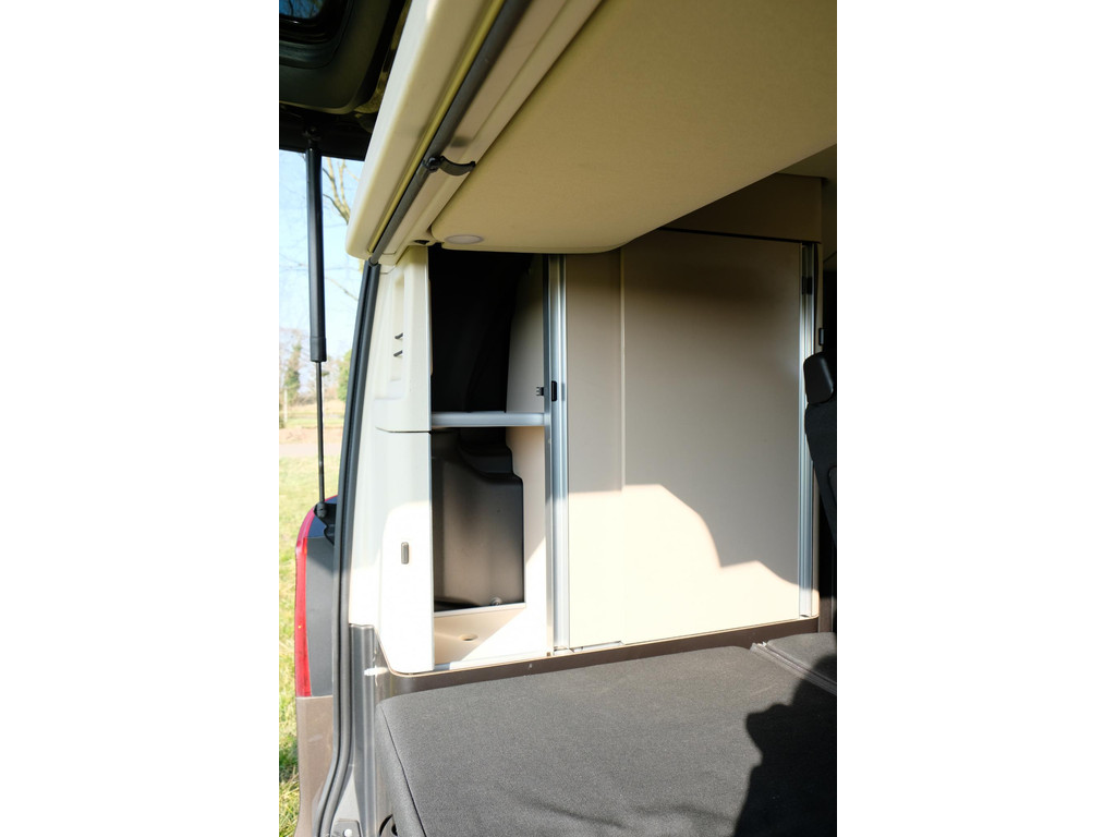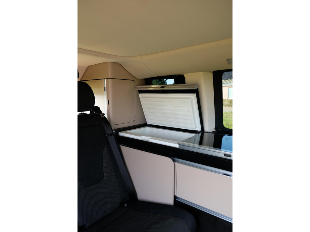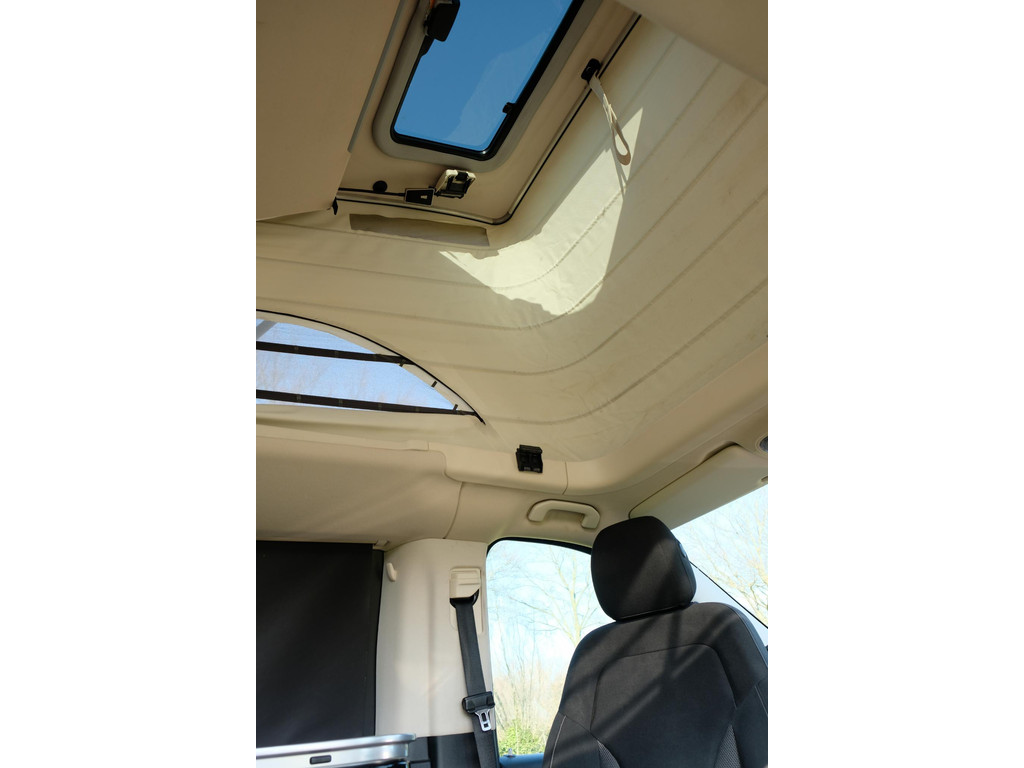 Het interieur van de camper ziet er nog heel goed uit. Het hefdak, dat handmatig te openen is, biedt een ruime slaapplek voor twee, terwijl de achterbank elektrisch om te bouwen is tot een tweede tweepersoonsbed. Hierdoor is het mogelijk om met 4 personen op pad te gaan met deze camper. Het keukenblok beschikt over een koelkast, 2 kookpitten (gas), een wasbak en opbergruimte voor al je keukenspullen. Door de trekhaak is het mogelijk om extra bagage of fietsen mee te nemen. Daarnaast beschik de Marco Polo over airco, navigatie en een achteruitrijcamera zodat je kunt genieten van maximaal rijcomfort.