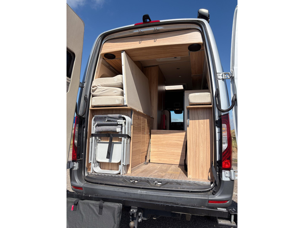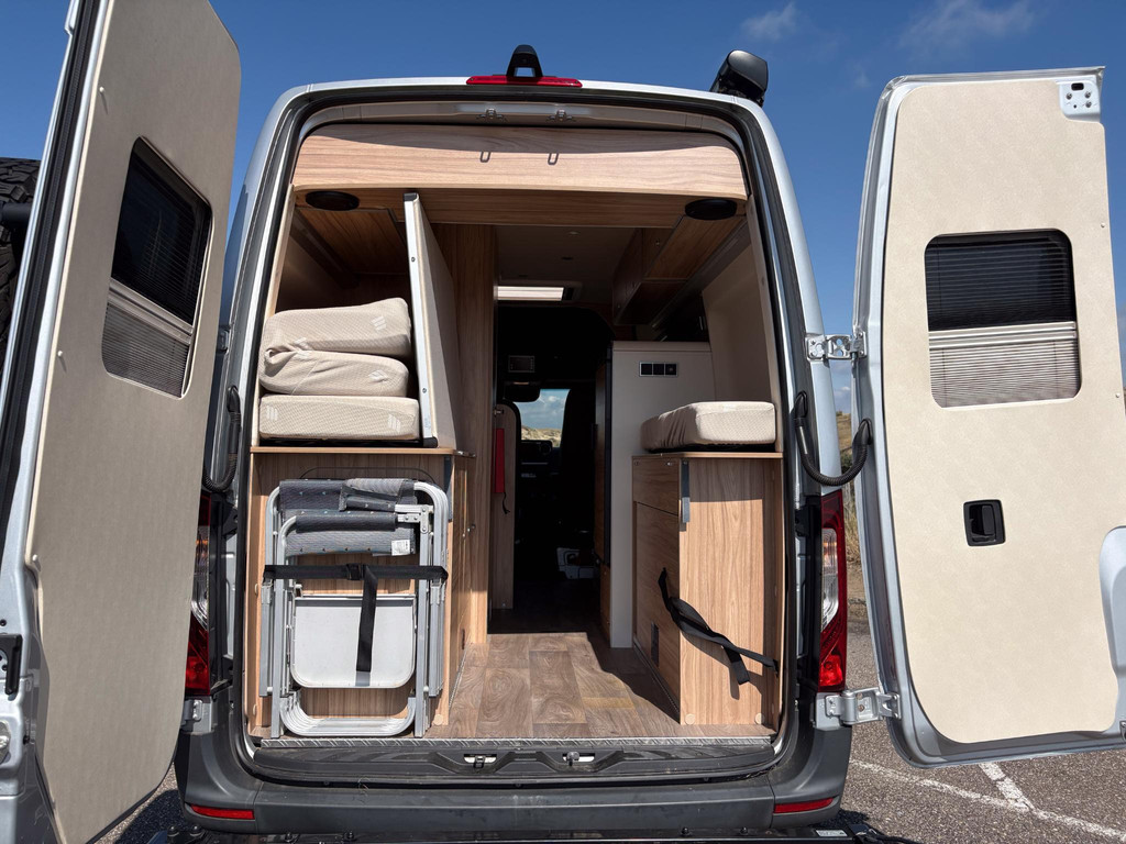 De uitrusting is zeer compleet. Denk aan twee reservewielen (één onder de auto en één op een speciaal achterrek), een luxe zwenkbaar fietsenrek waarmee de fietsen kunnen blijven staan bij het openen van de achterdeuren, zwartlederen bekleding, een zonnepaneel, een elektrische luifel, een krachtige dakventilator, muggenhorren en nog veel meer.